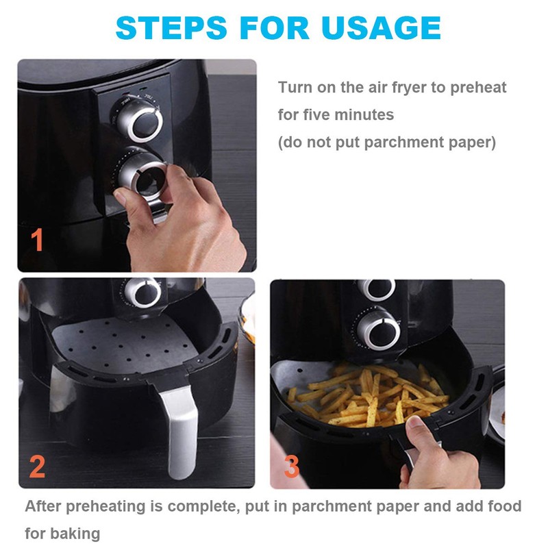 1. Please note that the temperature of the air fryer liner paper should be controlled below 450°F (230°C), and avoid using too high a temperature to cause the parchment paper to fail.