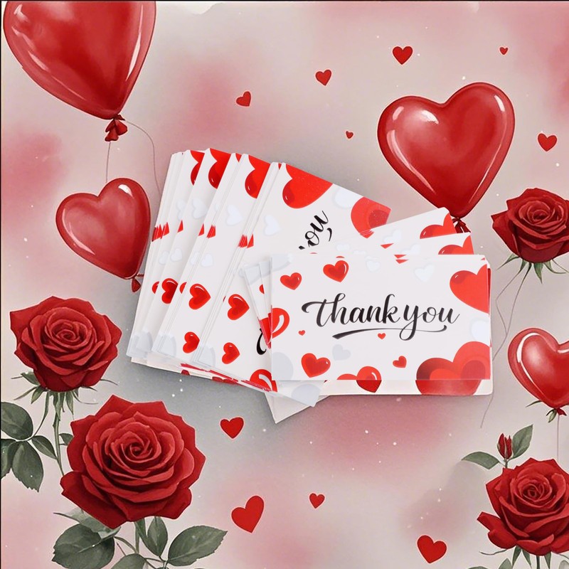 200Pcs Small Thank You Cards, 2" x 3.5" Business Card with Heart Pattern, Business Tool for Packaging Supplies