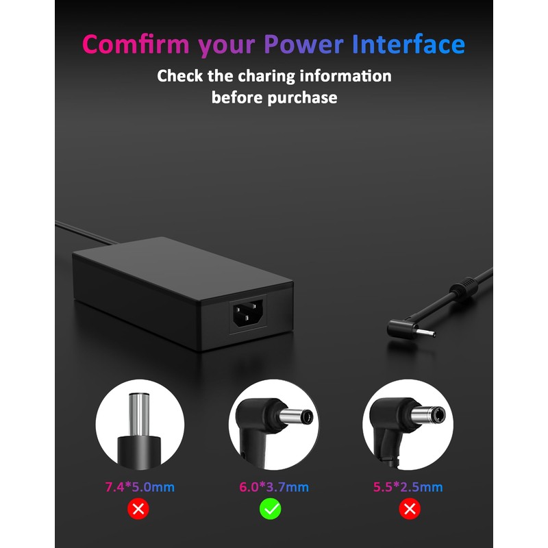 • Input: 100~240V, 50-60Hz; Output : 20V 10A; Max Power: 200W; Connector size: 6.0*3.7mm; also compatible with 20V 9A 180W / 20W 7.5A 150W chargers. Compatible Adapter P/N.: ADP-200JB D