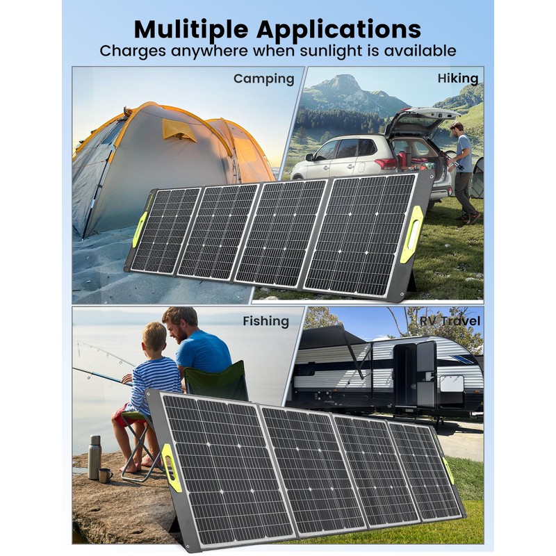 • [Compact and Portable] Weighing just 15 lbs, this foldable solar panel is lightweight and easy to transport. It’s perfect for activities like trekking, camping, or road trips. The 200W bifacial solar panel delivers high efficiency with a 28% energy conversion rate, thanks to its advanced solar cells.