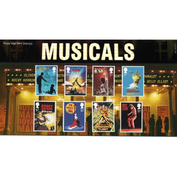 - Celebrating the long and rich history of music in the British theatre, this pack focusses on the writers, actors and number of shows of each of the musicals featured on the enclosed stamps.