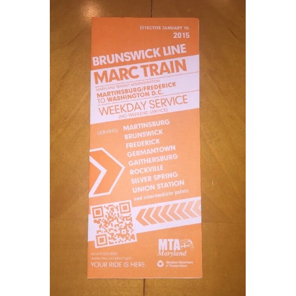 2015 MTA Maryland MARC Train Map & Schedule - Brunswick Line