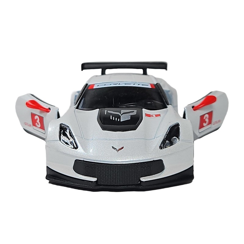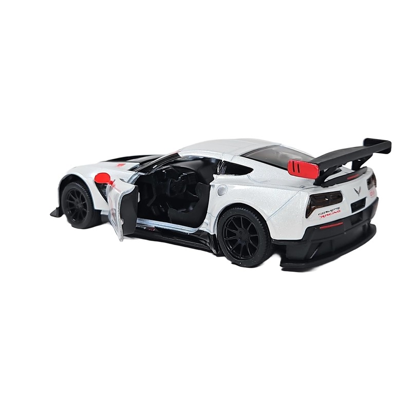 2016 Corvette C7.R, 1:36 Scale Die Cast Model, Openable Doors, Pull-Back Action, Red (White)