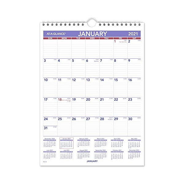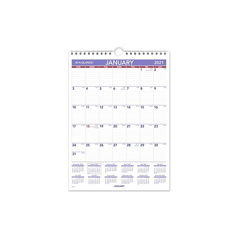 2021 Wall Calendar by AT-A-GLANCE, 8" x 11", Mini, Wirebound (PM12821)