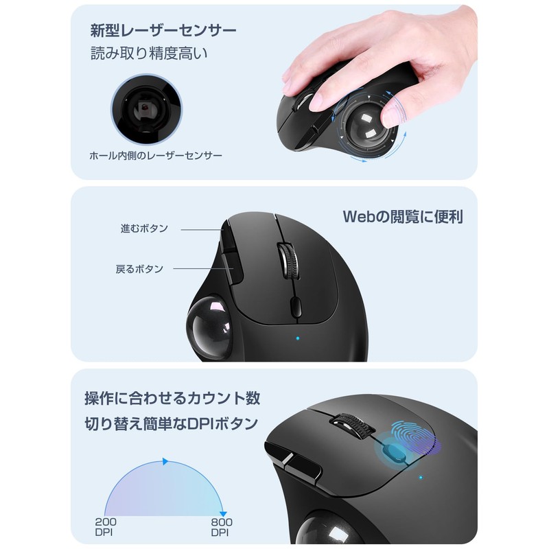 - (Various Button Features) This trackball mouse is comfortable and easy to use, and is equipped with both left and right buttons and wheels, as well as DPI buttons that can change the count according to your use. This DPI button allows you to switch between the speed of your cursor in 800 count and 200 counts. This allows you to do everything from detailed tasks such as Excel and drawing to a wide range of screen jobs. It also has a button that allows you to conveniently move and return to the internet (*Not compatible with Mac), so you can easily browse the webpage