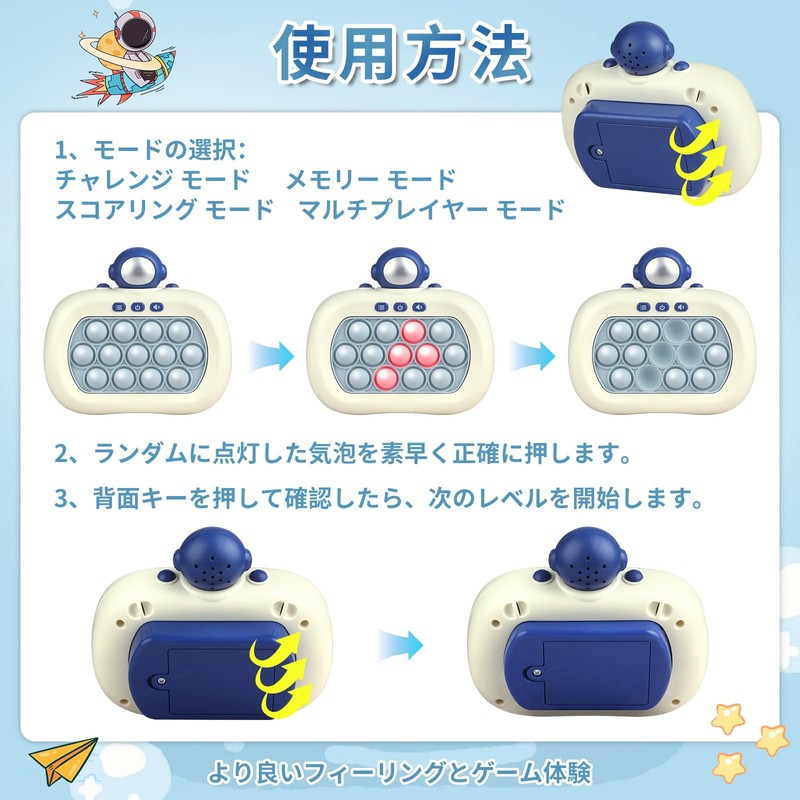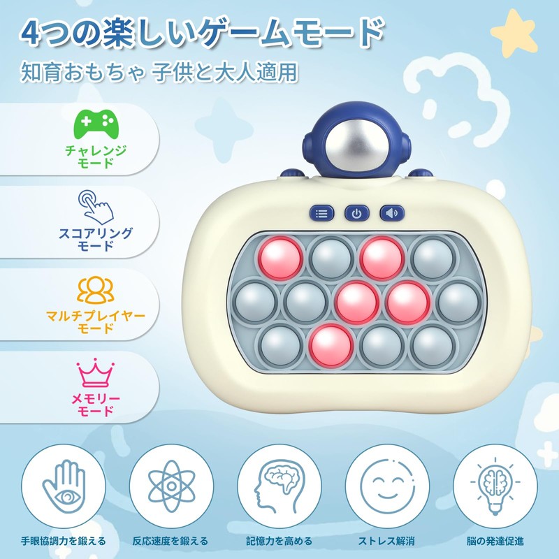 - (Upgraded Generation 4 13 Key Push Pop Game) When you choose this product, you will get a new upgraded 13-key game console and a 999 challenging stage, making it more playful and challenging than other products, and it can train children's responsiveness, coordination and memory. In addition, the large capacity AA battery included with this product is twice as power as many other AAA battery game consoles and twice the playtime