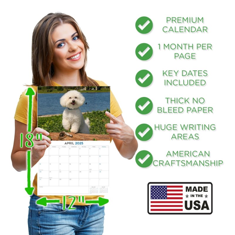 - PREMIUM PAPER - Each of our small batch Bichon Frise calendars runs uses the thickest paper in their class. Our artisans produce these premium BONUS month 2025 Bichon Frise calendars with high-definition Bichon Frise images and print them right here in the U.S.A. using the highest quality inks and environmentally friendly American paper from responsible sources.
