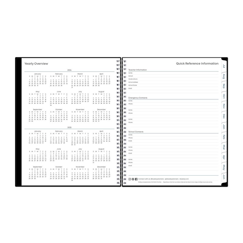 2024-2025 Blue Sky Teacher Lesson Planning Weekly/Monthly Calendar, 8-1/2" x 11", Black, July 2024 To June 2025, 134433-