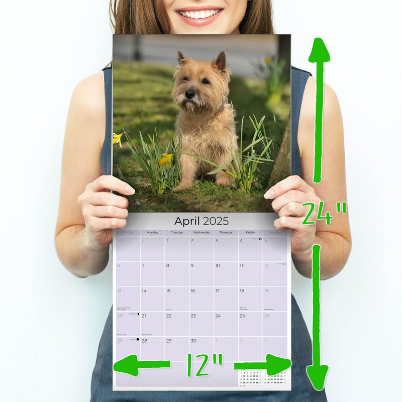 - BONUS SEPT - DEC 24 INCLUDED - Hanging monthly wall calendar from SEPTEMBER 2024 - DEC 2025. A square calendar of beautiful Cairn Terriers is ideal for creating a comfortable look in home & office. Size Closed: 12 W x 24 H, Size Opened: 12 W x 24 H.