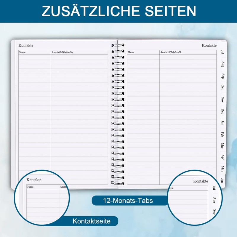 2024-2025 Diary, July 2024 - June 2025 Weekly Planner with Monthly Tabs, Back Pocket, Elastic Closure, Double Wire Binding, Easy Organisation of Daily Life, 14.8 x 21 cm
