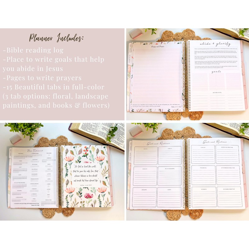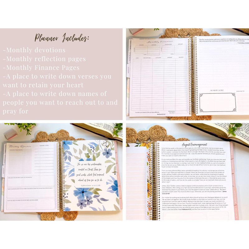 2024-2025 Planner | Christian Planner | August-July Planner | Prayer Journal | Monthly Devotions | 30 Cover Options | 8.5 x 11 inch (Cover 16, Floral Tabs)