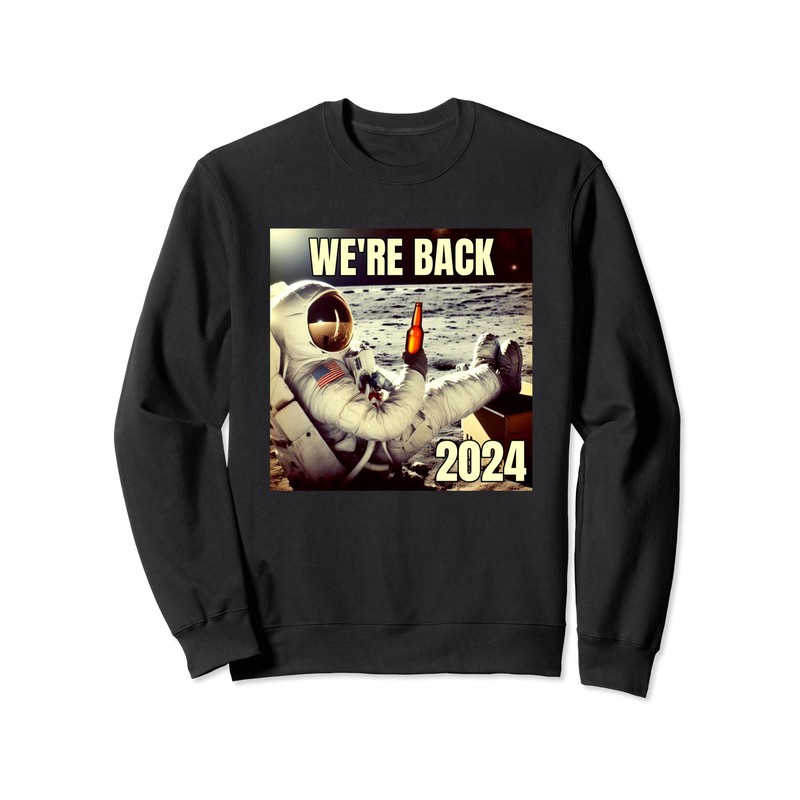 2024 Moon Landing We're Back Astronaut Drinking Beer Design Sweatshirt