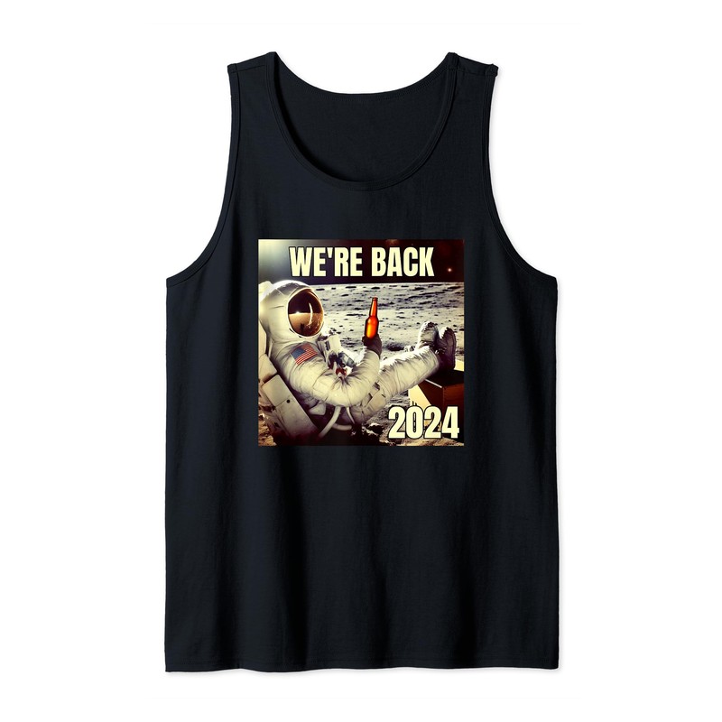 2024 Moon Landing We're Back Astronaut Drinking Beer Design Tank Top