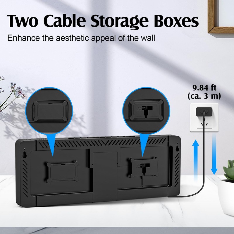 - 【Beautiful Room Decoration】 - Our large wall clock digital provides flexible placement options. You can effortlessly hang it on the wall using the two complimentary wall mounting screws and hooks, or elegantly place it on a tabletop with the foldable stand. To keep your space tidy, the clock also comes with two separate cable management boxes to perfectly conceal the 0.98-foot long cables.