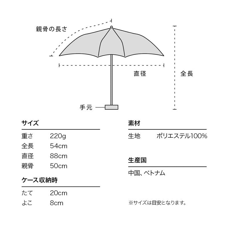 - (Rain Umbrella that can be used on sunny days) This product is mainly used as a rain umbrella, but it also has UV protection. However, the UV shielding rate (UV protection rate) varies depending on the color shaded color. Please refer to the following measurements as a guide. Light Color: Approx. 80%, Dark Color: Approx. 90%