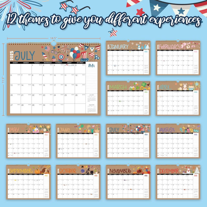 2025-2026 Wall Calendar - 18 Months Wall Calendar from Jul. 2025 to Dec. 2026, 2025-2026 Calendar Wall with 12 Themes and Julian Dates, Cute & Funny, 14.5" x 11.5"