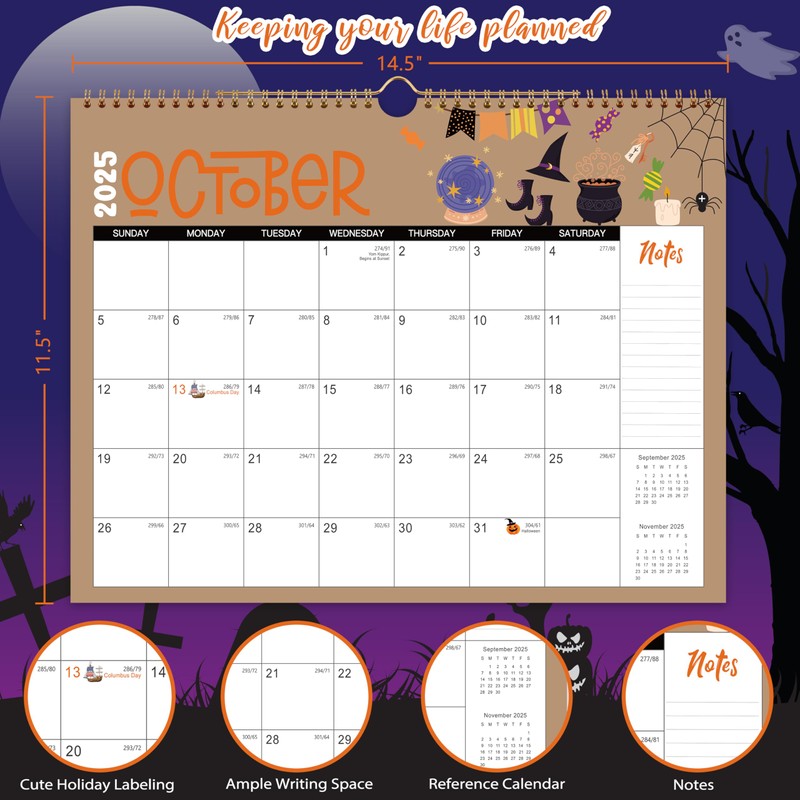 - đAmple Writing Space - Each day of the wall calendar 2025-2026 is blank, no horizontal lines to bind you, each blank grid size is . In addition, there is a NOTES panel on the right side, which is convenient to record the highlights and make your life more organized