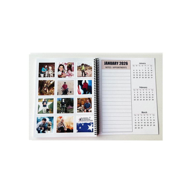 - Ten blind veterans are proudly featured with their guide dogs, and each month includes space for Notes and Appointments as well as an upcoming preview of the next 3 months.