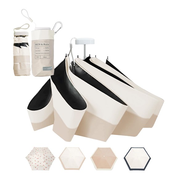 (2025 Folding Umbrella x Carabiner Pouch with Carabiner) Parasol, Sun or Rainy Weather, 99.9% Complete Light Blocking, Folding Umbrella, Case Included, Small Folding Umbrella, Windproof, Water