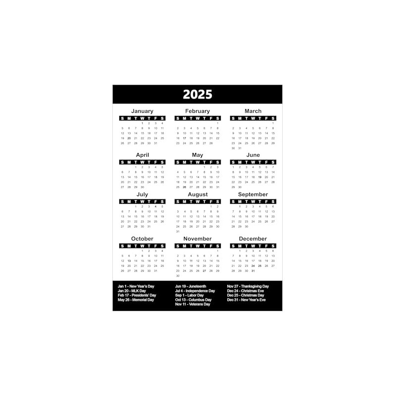 • Comprehensive: This 2025 calendar magnet features all federal holidays for easy reference throughout the year.