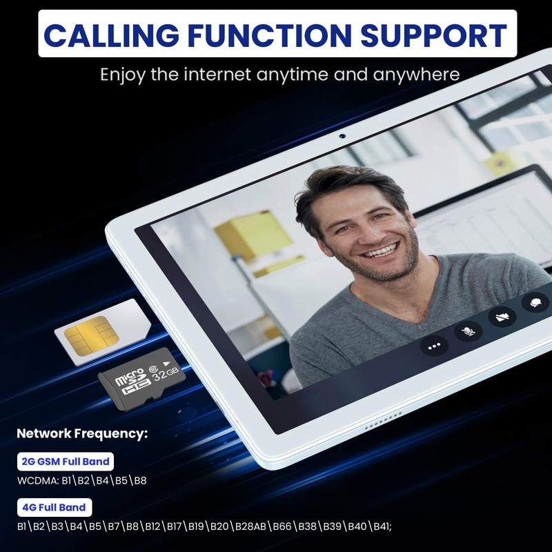 - 【4G CELLULAR ALL NETWORK】The phone tablet features a call function and supports the complete frequency band of 4G signals. With this device, you can enjoy seamless connectivity outdoors without worrying about SIM card compatibility or network availability. *NOTE: SIM CARD NOT INCLUDED