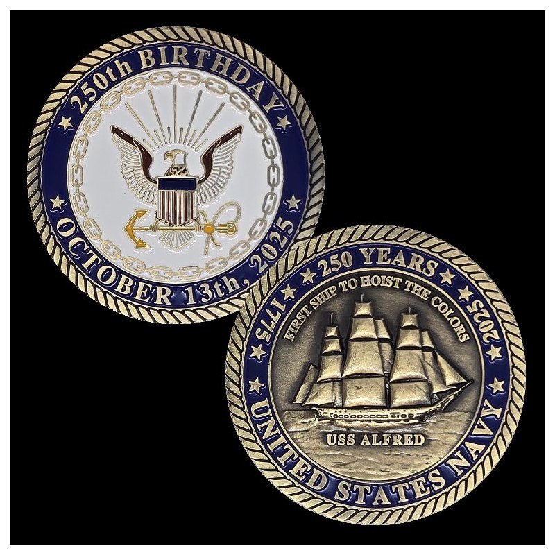 2025 Navy Challenge Coin for 250th Anniversary 2 inch Solid Brass - USN Chief...