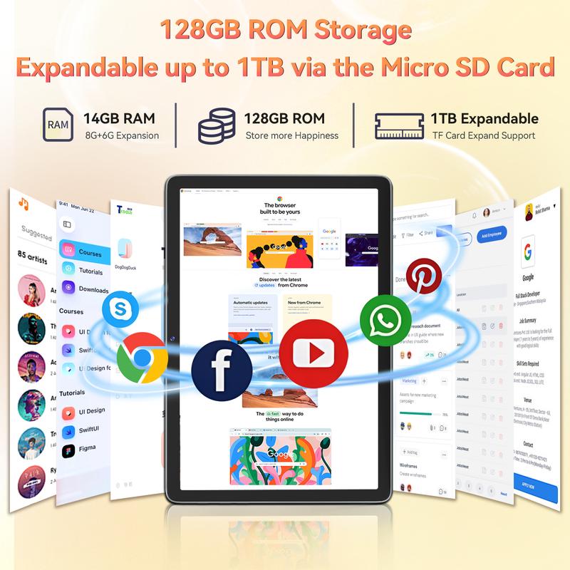 The D106 offers ample storage space with 14GB RAM (enhanced via 8GB+6GB technology) and a generous 128GB ROM. Never run out of room for your favorite content again. Easily expand your storage capacity up to 512GB with an SD card, accommodating a vast library of movies, music, games, and more. Carry your digital world with you, always accessible and ready to entertain.