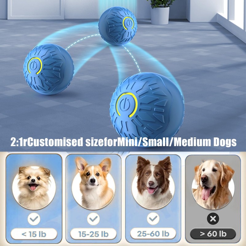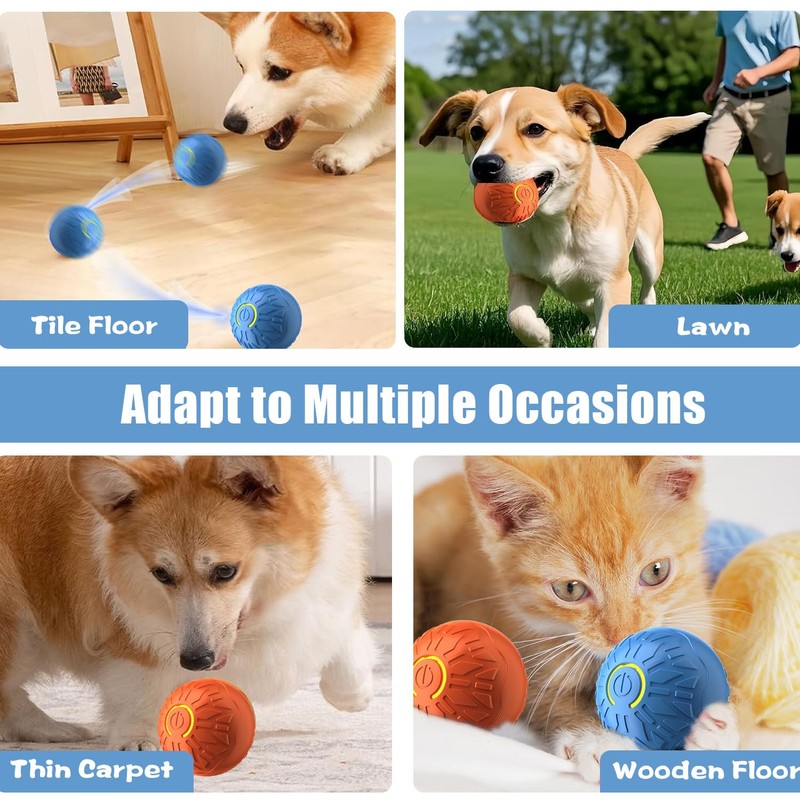 - ✨Smart Activation: When your pet touches the ball, the dog ball will automatically start, automatically roll or bounce for five minutes, and enter standby mode.