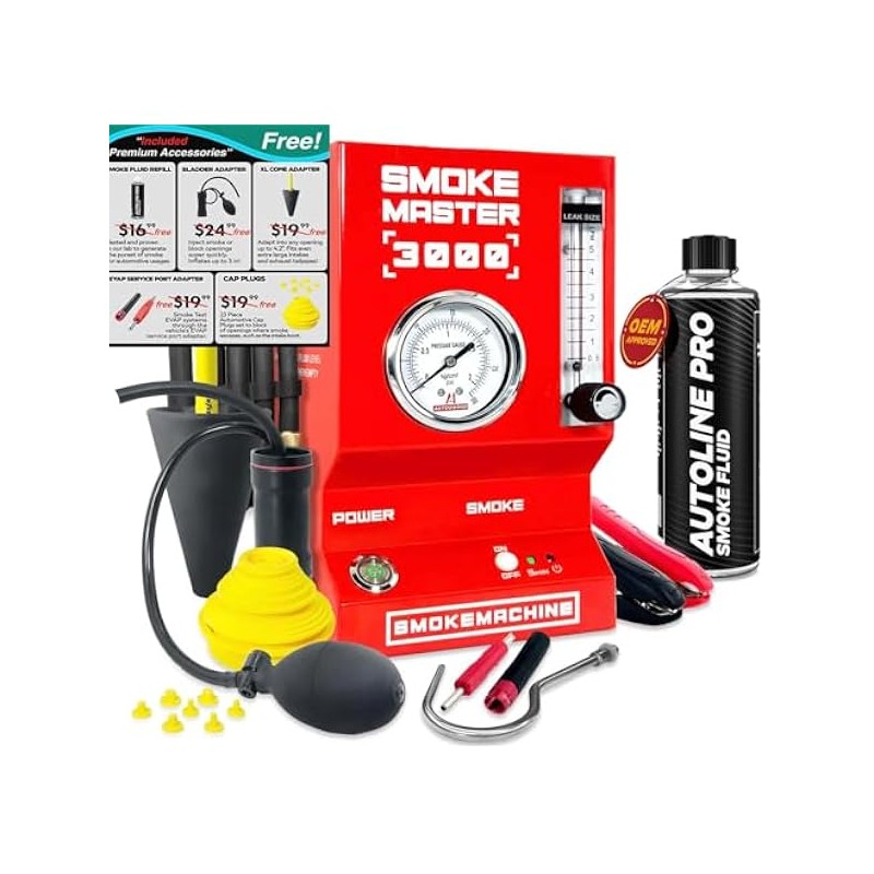 *2025 New Model* Automotive High Volume Smoke Machine with Best Ranked Smoke Fluid - EVAP Leak Detector with Built-in Air Compressor - Model 3000 – EVAP Vacuum Exhaust Smoke Detector Tools Kit - Red