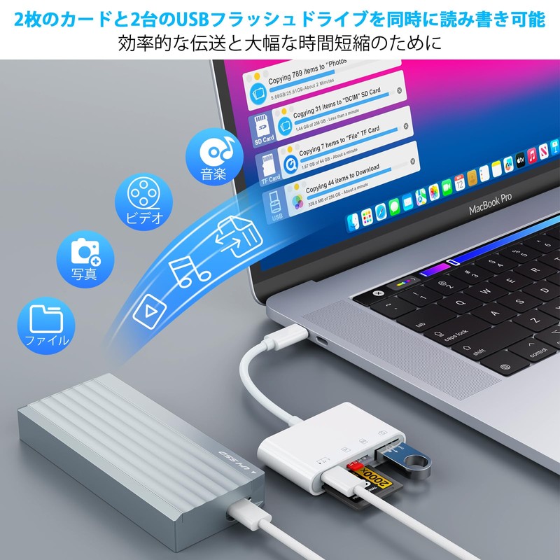 - (Simultaneous Read and Write Data Transfer) SD card reader mac, adopts the latest generation of 2024 chips, allows you to read and write 2 cards and 2 USB memory at the same time, supporting high-speed data transfer of 100 photos in just seconds. Bi-Directional: Supports both smartphone to SD/TF card/USB memory, and SD/TF card/USB memory to smartphone. Data transfer is fast and simple!