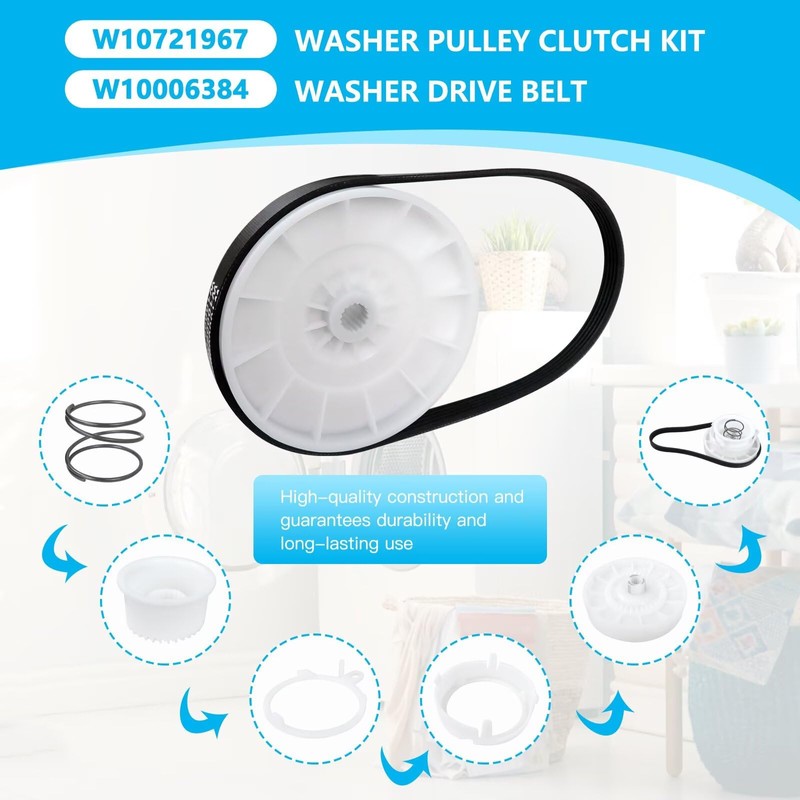 - Compatibility: W10913953 washer shift actuator/ W10721967 washer pulley clutch kit & W10006384 washer drive belt compatible for Whirlpool/ May-tag/ Ken-more/ Ama-na/ Crosley/ other brands. Replacing them can help improve the efficiency of your washing machine and make it last longer
