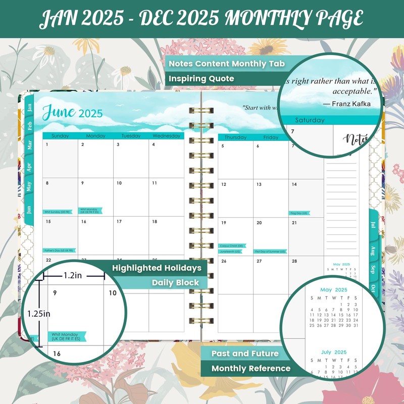 - 💖 2025 Planner - This 2025 planner weekly and monthly covers 12 months from January 2025- December 2025. The size is 6.4" x 8.5", comfortable to carry and use. Provide 12 monthly tabs dividers for an easier year-round tracking and quickly access.