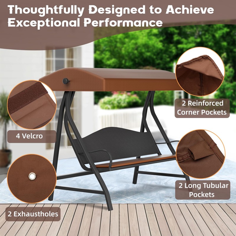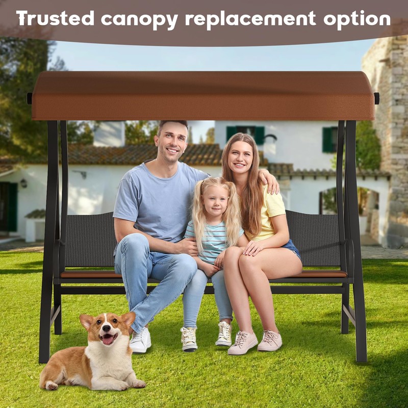 2025 Porch Swing Canopy Replacement top Outdoor Patio Swing Canopy Replacement top Cover 3 Seater - Waterproof UV-Resistant Polyester Oxford Fabric (Frame & Cushions Not Included)