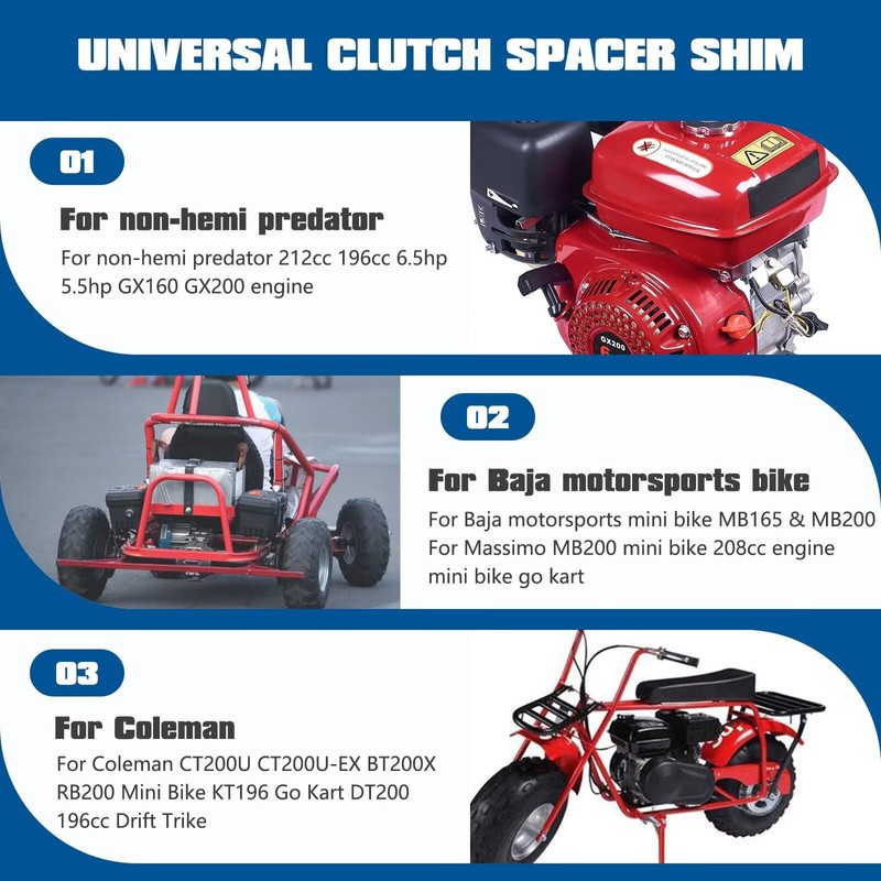 - Universal Clutch Spacer Shim Washer 3/4 inch Shaft For non-hemi predator 212cc 196cc 6.5hp 5.5hp GX160 GX200 engine