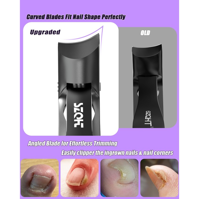 - 2025 Upgrade Angled Blade: This 2025 upgraded toe nail clippers for thick nails for seniors includes a precision-angled blade to minimize wrist rotation, helping you trim nails without twisting your body. Perfect for anyone seeking easy-to-use, fingernail clippers for men or women.