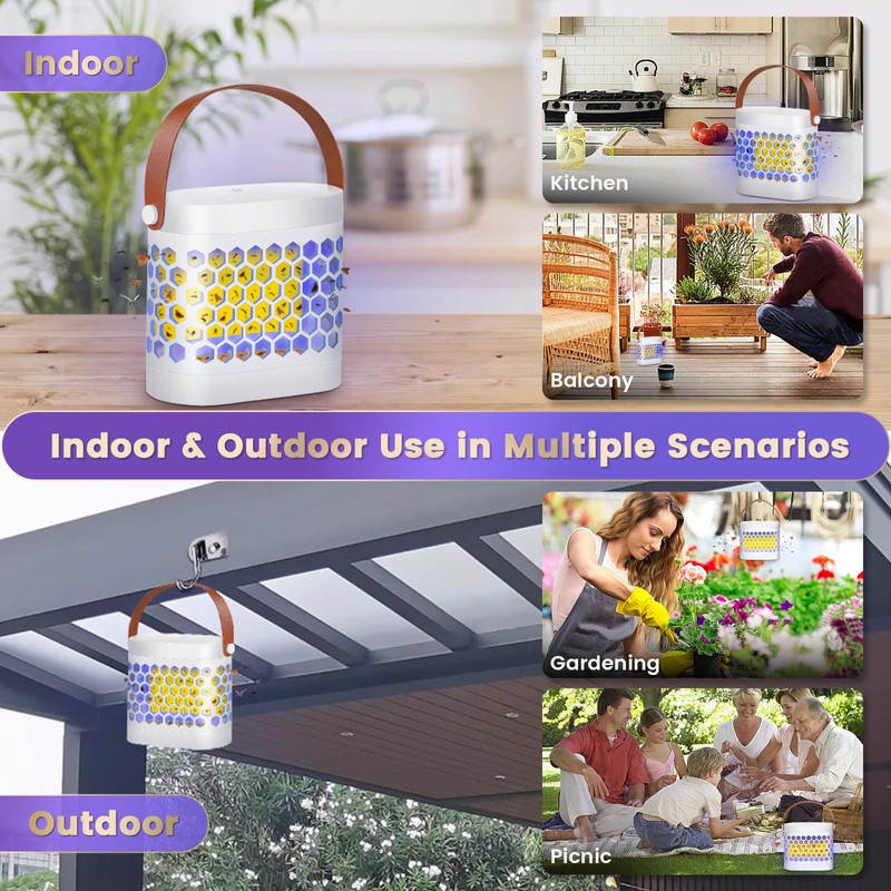 - 【Protect Your Family Day&Night】The gnat traps for houses indoors and outdoors are suitable for use almost anywhere. It is an ideal mosquito killer for indoor places such as kitchens, bedrooms, and restaurants. At the same time, you can easily take it outdoors, suitable for gardening, picnics, fishing, etc. Choose this moth killer to keep your family safe and comfortable from flying insects in your home