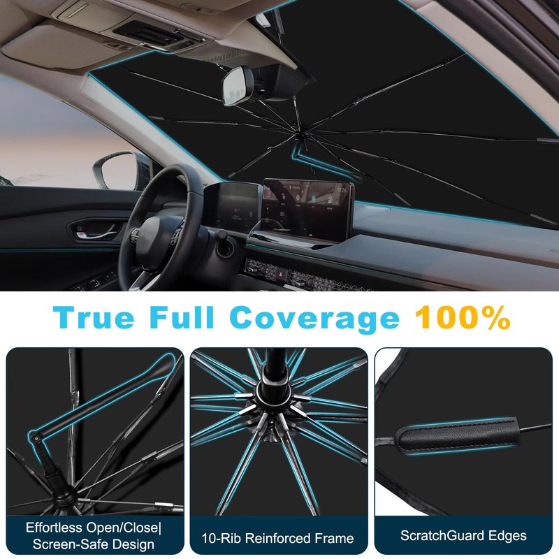 - Ultra-Portable & Space-Saving: Lightweight foldable frame collapses to 12" for glovebox storage, featuring instant one-hand deployment – perfect for quick sun defense during errands or trips.