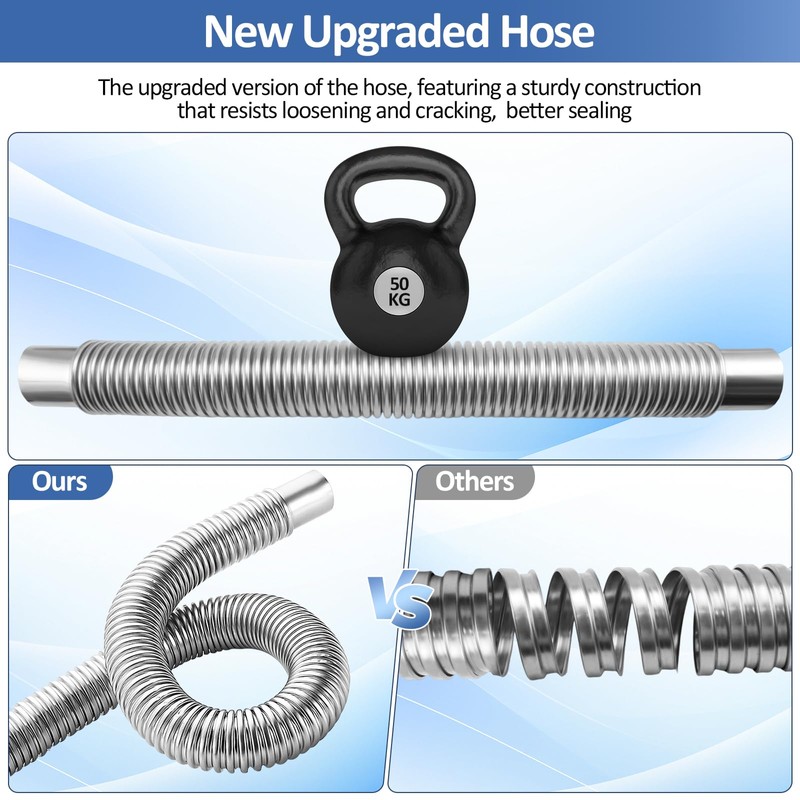 - 【EXCEPTIONAL DURABILITY MEETS DURABLE STAINLESS STEEL】 QLNGAS generator exhaust extension kit features industrial-grade stainless steel hoses and heat-resistant connectors. The pressure-resistant design prevents kinking and resists damage and corrosion, and the excellent heat-resistant materials make them ideal for stormy seasons, long-term outdoor use, and construction sites