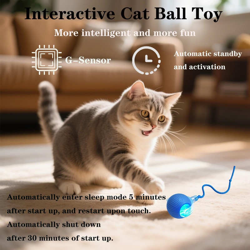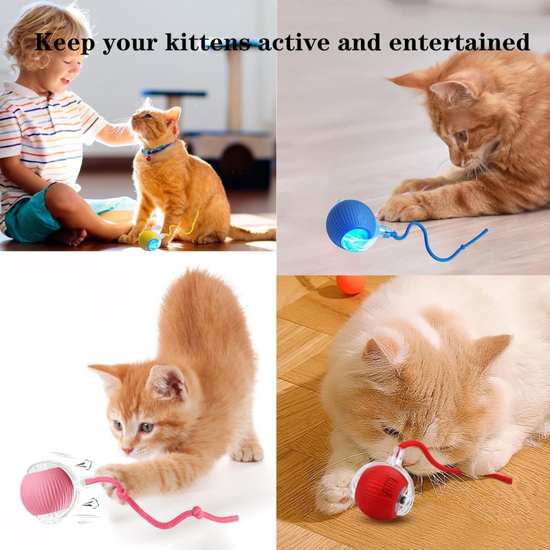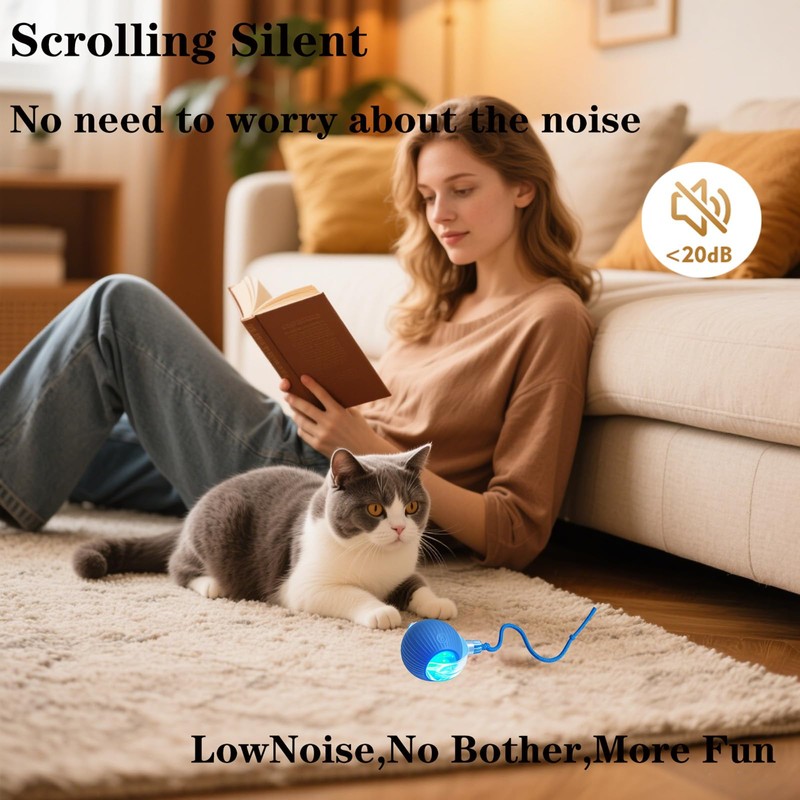 - 【Smart Interactive Play – Hours of Fun】Keep your cat active and entertained! This intelligent self-moving cat toy ball mimics real prey movement and features an auto wake-up function to escape corners and obstacles, stimulating your cat’s hunting instincts for endless chase, pounce, and play.