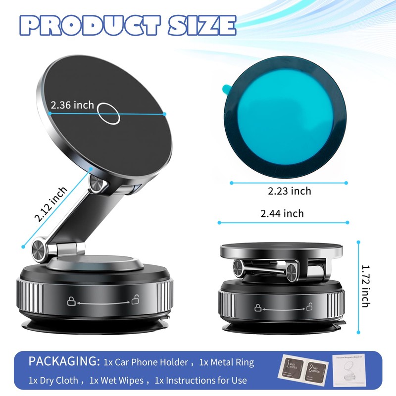 2025 Upgraded Phone Holders for Your Car,360° Adjustable & Magnetic Phone Holder for Car with Vacuum Suction Cup & Rotary Knob,Folded Cars Phones Holder Compatible with MagSafe