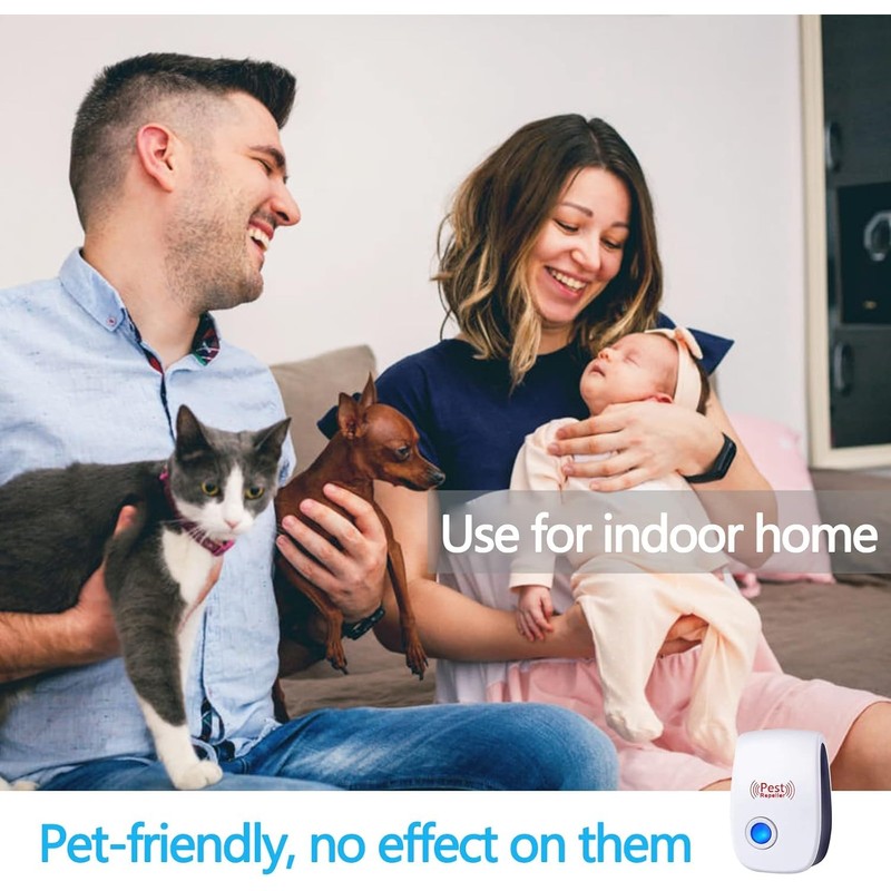 - Human/Pet Friendly: Physically destroying pests' living environment, ultrasound waves only affect pests and mice. For children/pregnant women/elderly/pets, the pest repellent is safe and does not interfere with home appliances. Silent and non-radioactive operation.