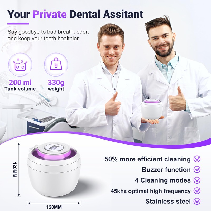 - 【Real Ultrasonic Technology for a Superior Clean】Upgrade your dental care with our 45kHz ultrasonic waves, generating millions of microscopic bubbles to remove dirt and buildup from the deepest crevices. We include a tin foil test in the user manual—just add cold water, place the tin foil in the machine, and let it run. Only genuine ultrasonic waves can shatter the foil, proving its authenticity!