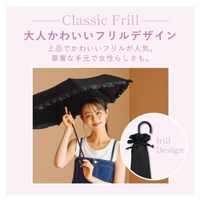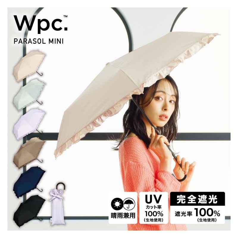 [2025] Wpc. 801-11820-102 Parasol Blackout Classic Ruffle Mini Black <100% Shading Ratio / 100% UV Reduction / UPF 50+ / Thermal Blocking/Rain / Rain / Sun / Rain / Outdoor Use > Folding Umbrella for