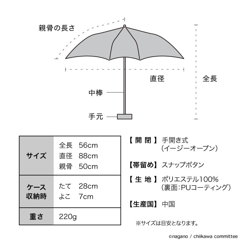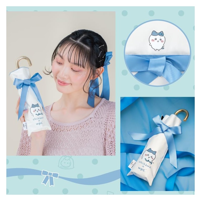 - This parasol is designed with the story of the memorial "Hometari Ribbon" that connects the friendship of the Chiikawa and bee. Both the parasol and storage bag have a blue ribbon. The parasol has a ribbon attached to the ears at one point, and the vase with a lovely ribbon. Every time you use the parasol, you can imagine a warm story and heal by a bee illustration that cherishes the blue ribbon