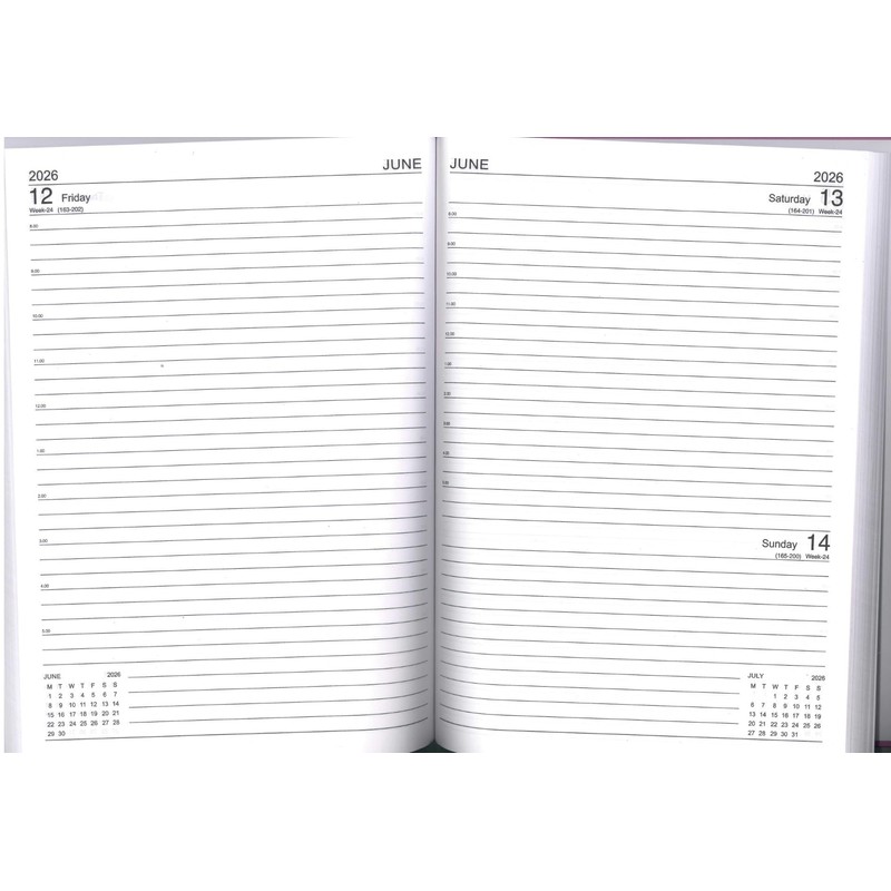 - Efficient Planning : Day a page layout with appointment times, Saturday & Sunday share a page