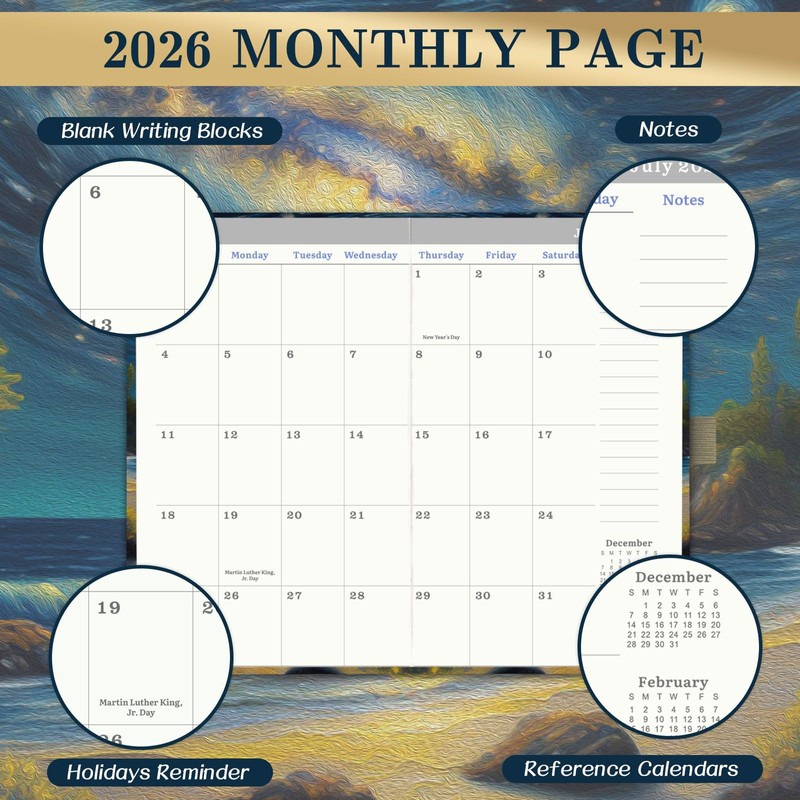 - 🌃PREMIUM PAPER - This 2026 planner weekly and monthly with high-quality paper for superior ink bleed resistance, keeps your pages legible. Keep track of deadlines, special events and more with this weekly and monthly planner 2026 from now on!