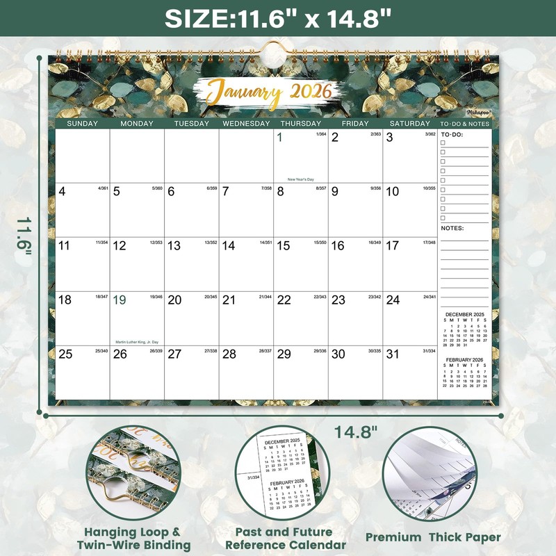 - 🎄 MAKE YOUR LIFE PRODUCTIVE - Utilizing this wall calendar 2026, you can write down ideas, appointments, etc. This calendar 2026 is also a thoughtful gift choice for teachers, students, kids, and busy friends! Sincerely hope that the wall calendar 2026 can bring you organized the happy life! Get this great 2026 calendar wall for home, office and school!