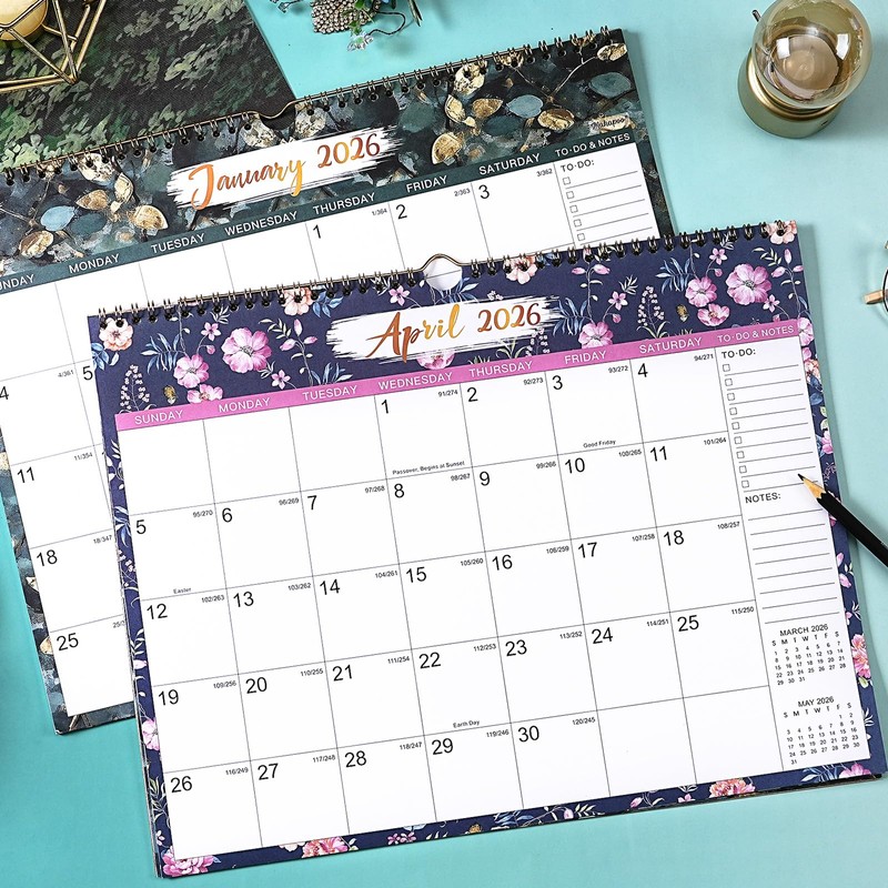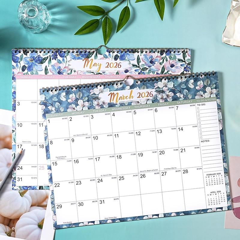 - 🪻 HIGH-QUALITY 2026 CALENDAR- Thicker paper than the most 2026 calendars in the market to reduce bleeding, erase fraying and shade issues. Bright white paper to create clean writing space and protect environment and this 2026 wall calendar 12 month is printed with high quality and well-balanced color ink.