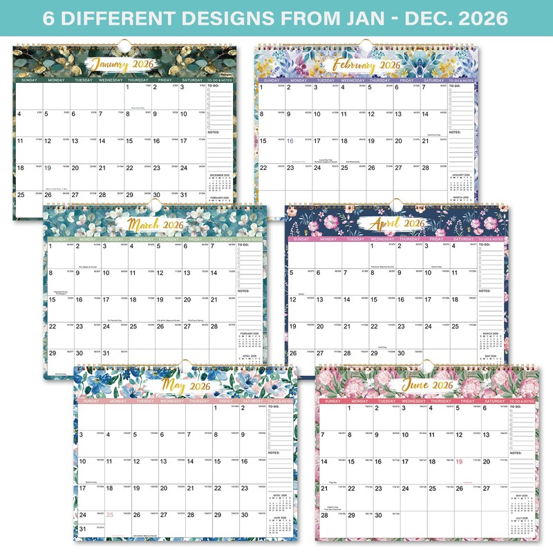 - 🎄 2026 WALL CALENDAR - This 2026 calendar covers 12 months from January 2026 to December 2026, featuring 6 different patterns, it also will be a decoration in your home. The perfect size of 15'' x 11.5'' works great on a desk, wall, refrigerator, or in the kitchen, meeting all your needs. Also, this wall calendar 2026 will give you an overall vision of a full year of reference to plan.