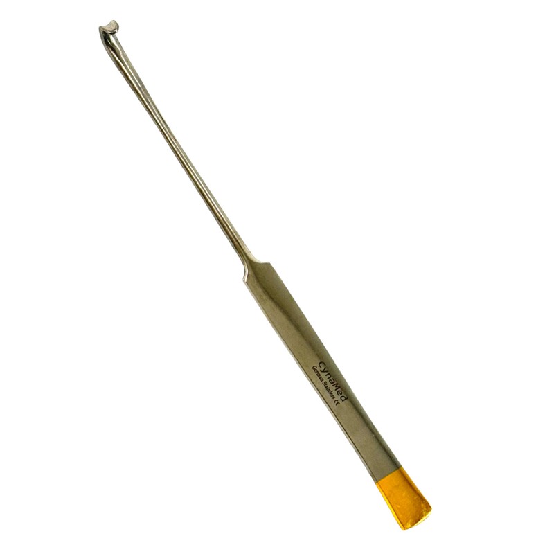 • 1 Piece: 8" (20cm) Spay Snook Hook with Gold Tip Flat Handle and Smooth Finish for Animal Spaying Procedures